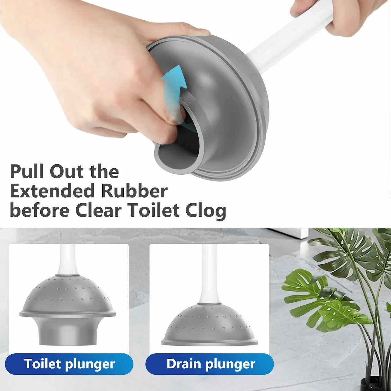 - Heavy Duty Toilet Plunger: Craft with premium rubber, the plunger creates a seal and apply powerful pressure, effectively clearing stubborn clogs in toilets, shower, drains and sinks