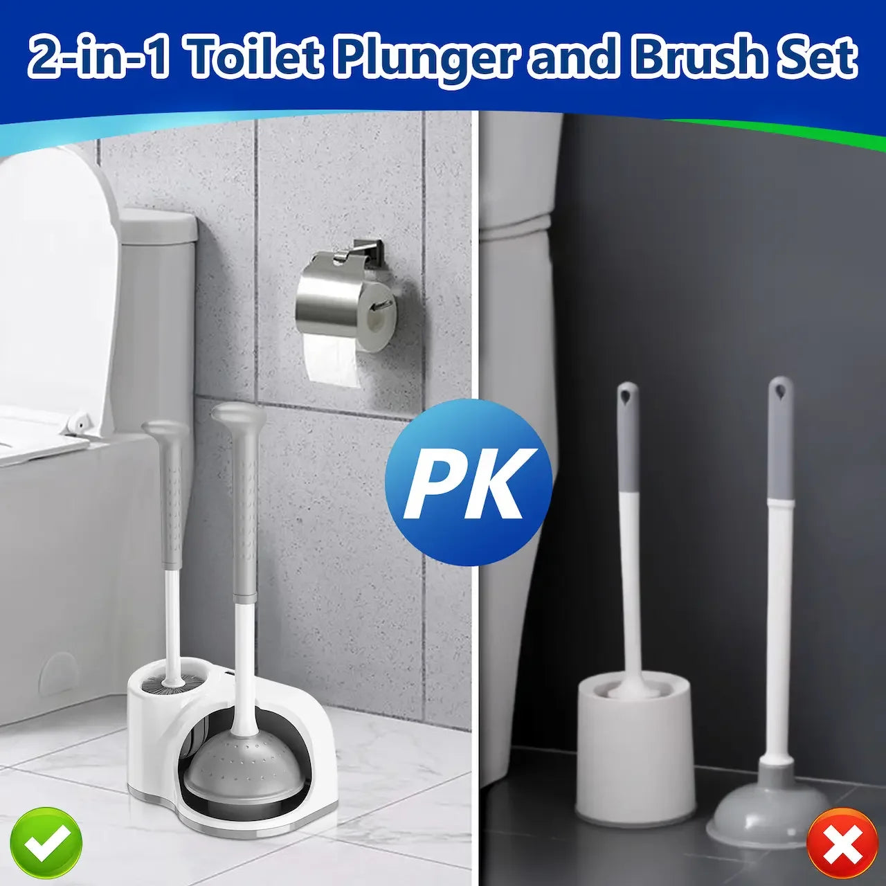 - 2 IN 1 Cleaning Set: Includes toilet plunger, bowl brush and holder, providing you with a convenient and efficient cleaning experience, keeping your bathroom tidy and clean
